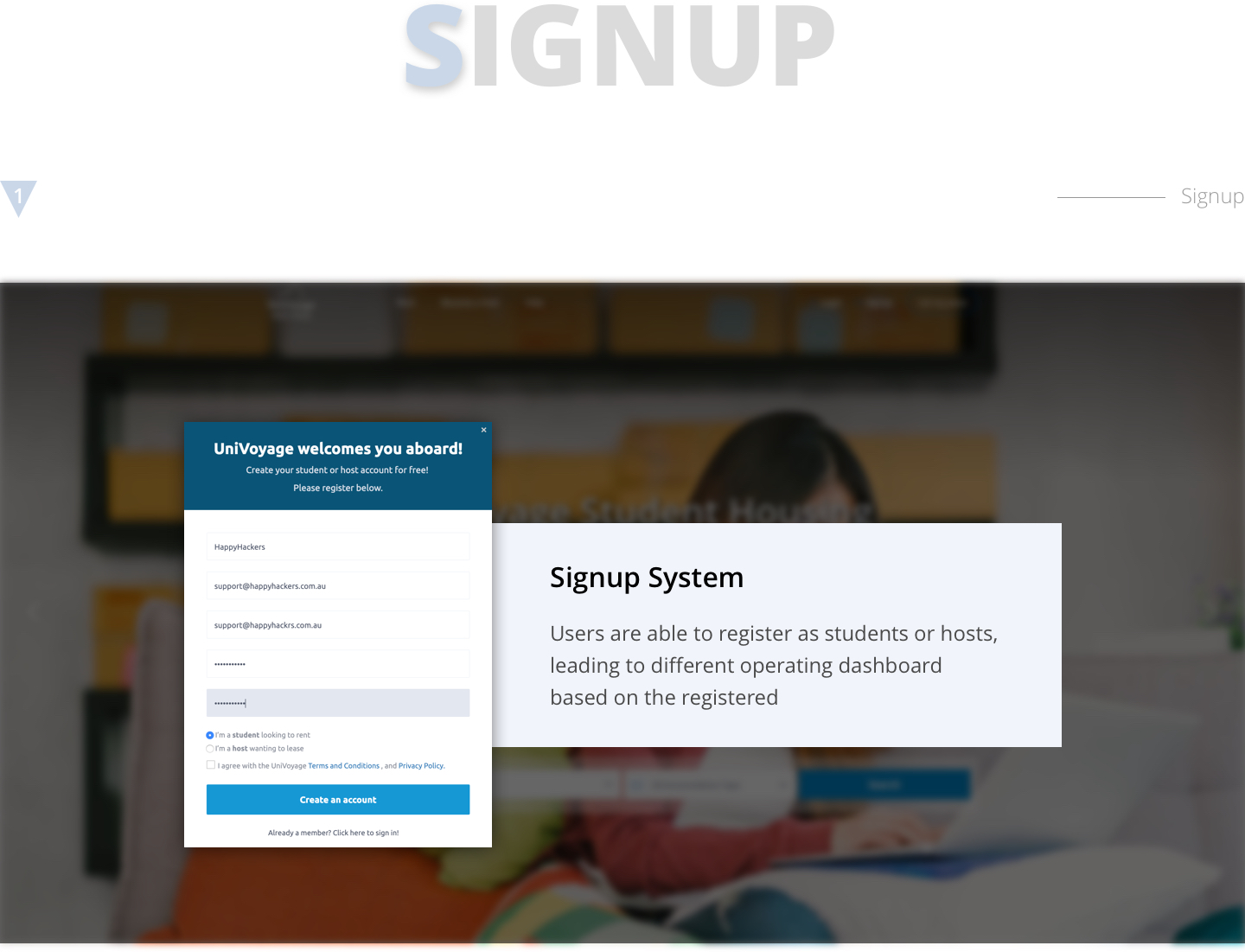UniVoyage is an online marketplace for student accommodation, aiming to connect with students to obtain a perfect and safe place to live in, a place where you can feel at home.